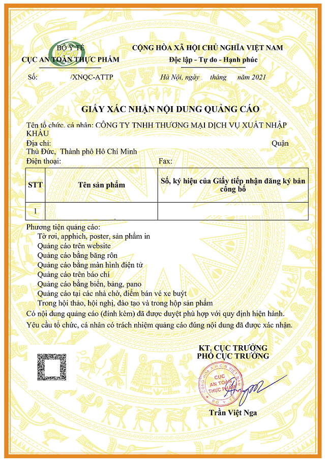 - Tổ chức/cá nhân có trách nhiệm quảng cáo đúng nội dung đã được xác nhận.